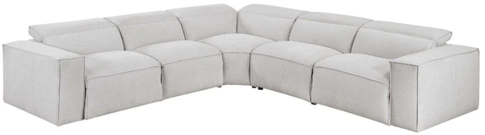 Includes Fve pieces: LSF power reclining chair and armless chair and corner seat and power reclining armless chair and RSF power reclining chair