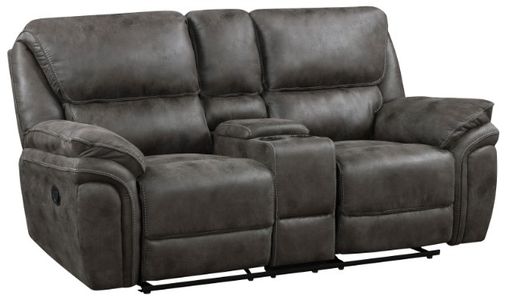 With a pull of the side mounted tab the reclining mechanism is engaged easing the dual recliners of the love seat into the prone position. The love seat features a console unit with hidden storage as well as cup holders for convenient functional use.