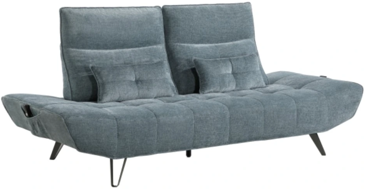 The manual adjustable headrest provides extra support for relaxation, while the included decorative pillows add a touch of style. Perfect for modern homes, this sofa combines luxurious upholstery with practical features for an elevated lounging experience.