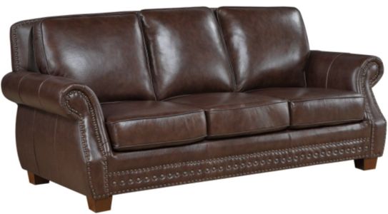 Regal and inviting, this classic brown leather sofa transforms any living room into a sophisticated retreat. Upholstered in 100% top-grain leather on all high-contact areas, this sofa couch offers a luxurious and supple feel, while a durable faux leather finish on the sides and back ensures long-lasting beauty.Read More