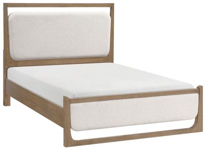 Elevate your bedroom's ambiance and style with this modern bed frame, featuring a striking combination of light brown wood and textured upholstered accents. Crafted from durable hickory veneer, wood, and engineered wood, this bed boasts a sophisticated design with a plush headboard and footboard.Read More
