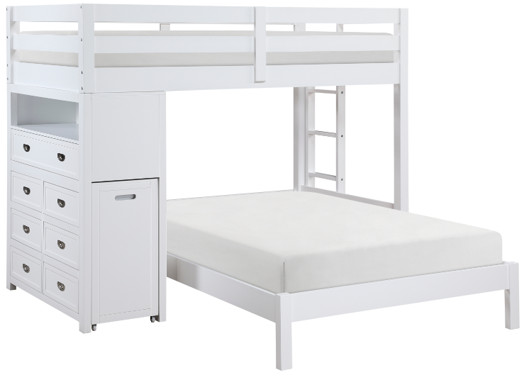 Maximize your child's bedroom space with this multifunctional white loft bunk bed, designed for both style and practicality. Crafted from wood with a sleek white finish, this bunk bed features a top twin bunk with guard rails for safety and a full-size lower bed.Read More