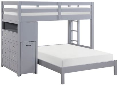Maximize your child's bedroom space with this multifunctional gray loft bunk bed, designed for both style and practicality. Crafted from wood with a sleek gray finish, this bunk bed features a top twin bunk with guard rails for safety and a full-size lower bed.Read More