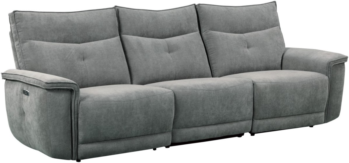 Providing ample seating in modern form the Tesoro Collection. The classic sofa is book-ended by USB port enhanced end power recliners – allowing for maximum versatility when planning the layout of your living room. Dark gray fabric provides a neutral palette for your decorative preferences.Read More