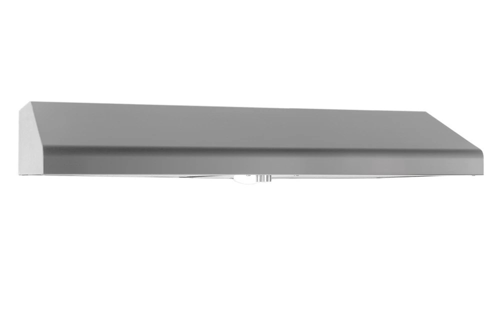 This under cabinet range hood features standard finish in stainless steel or optional black or white powder coat. Includes dishwasher-safe aluminum mesh screen filters. Dimensions: 6” high x 22” deep x (30”, 36”, 42”, 48”) wide.Read More