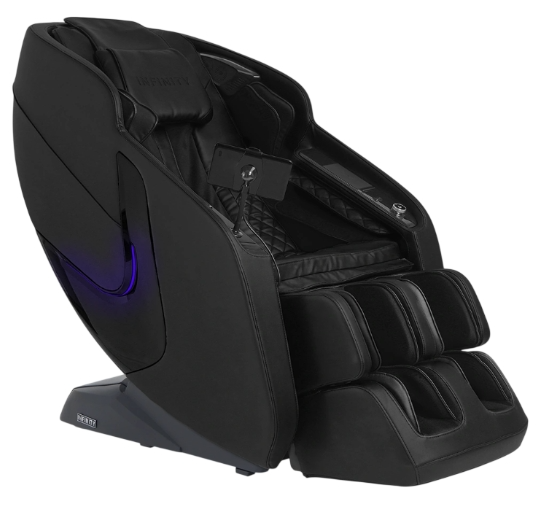 Equipped with a versatile, 4-Node Back Massage Mechanism, the Solstice Deluxe offers a full range of techniques — including shiatsu, kneading, tapping, and knocking, that work together to soothe tension and refresh tired muscles. The variety ensures you enjoy a massage that feels both dynamic and tailored, bringing spa-inspired relief into the comfort of your home. Before every session, TrueFit® Body Scanning Technology analyzes your unique size and shape to ensure the massage begins perfectly tuned to your body. For full-body rejuvenation, the Solstice Deluxe pairs dual foot rollers and airbag compression therapy to ease tension and improve circulation, while soothing lumbar heat helps melt away stress. Built-in Bluetooth Speakers, a smart dial controller, and convenient device charging keep your sessions immersive and effortless. To complete the experience, chromotherapy lighting sets a calming mood, delivering a holistic escape that goes far beyond relaxation.