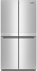 This 19.4 cu. ft. 36-inch-wide Counter-Depth 4-Door Refrigerator with PrintShield™ Finish has a French Door refrigerator on top and Side-by-Side freezer compartments on bottom. Right freezer compartment is the Custom Freeze Zone that allows ingredients to be stored at 0, 10 or 19ºF.Read More