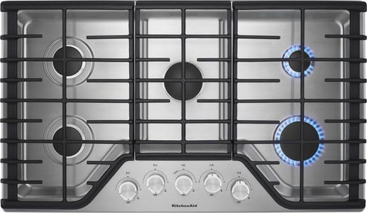 Whether you need to rapidly boil water for pasta, sear a steak, or simmer a delicate sauce, you'll appreciate the versatility of this 36-inch, five-burner gas cooktop. The performance is matched by design that includes robust, metal control knobs and continuous cast-iron grates that give you the ability to move pots from one burner to another.Read More