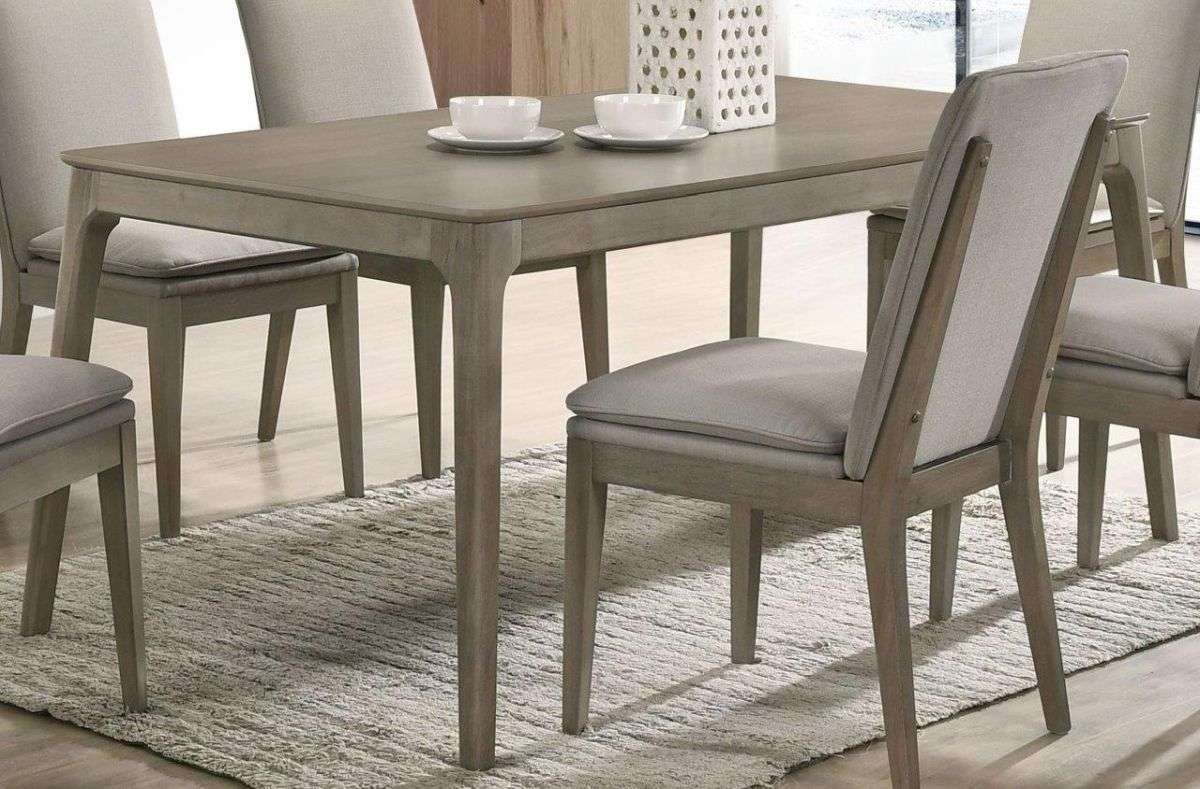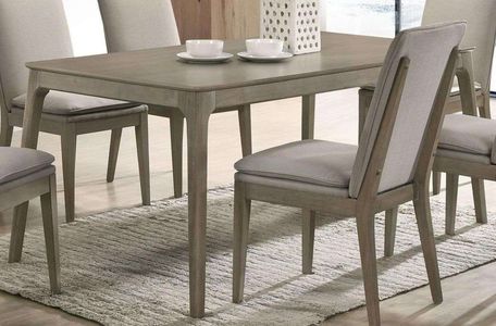 Enjoy the clean lines and Transitional style of the Maggie dining group. Taupe wood veneer and 100% Polyester Cushions/Fabric.Read More