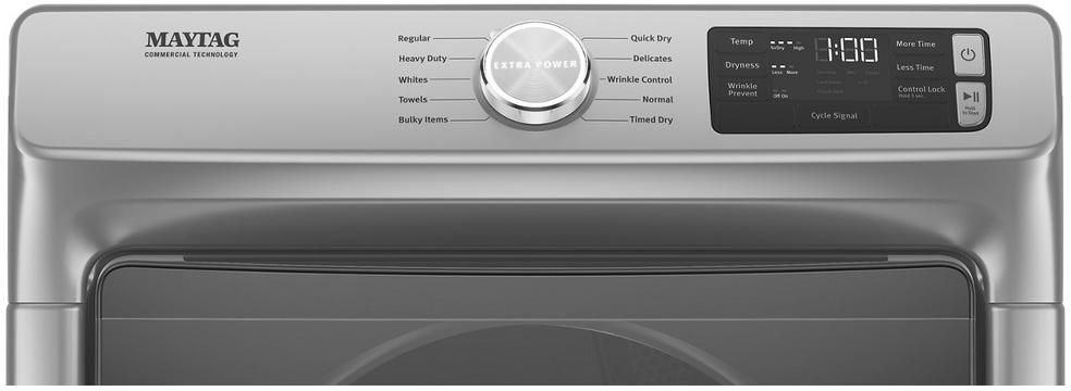 The Extra Power button boosts drying power on any cycle by extending time, heat and tumbling. One push helps prevent underdrying by getting thick fabrics, pockets and seams drier the first time.