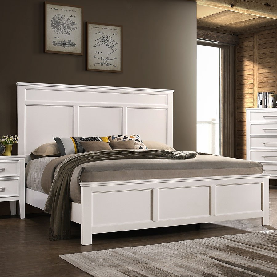 The Andover Collection by New Classic Furniture is made of unique rubberwood and engineered veneers, a bedroom suite that invites you to stay longer with a nice book or your morning coffee. Beautiful color gives this bedroom a distinctive look. Available in White or Nutmeg finish.