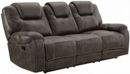 The Anton reclining sofa provides comfort in any home. Covered in chocolate polyester with coil cushions, hardwood & plywood frame, and pillow arms, this is a great piece for your living space.Read More