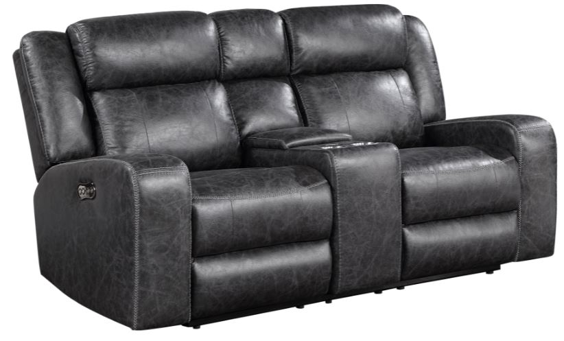 Elevate your living space with the Atticus Console loveseat that features a charcoal finish and features a power headrest and footrest. Make a bold statement by incorporating this stunning loveseat into your home.Read More