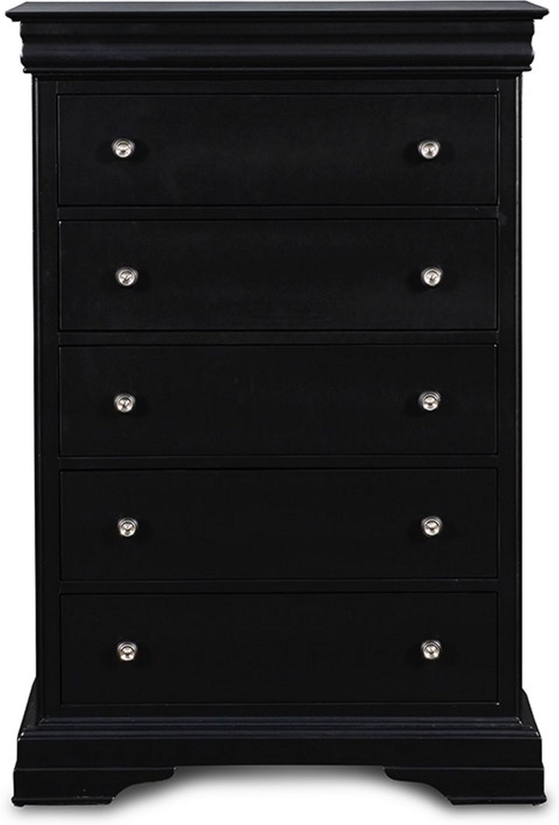 The Belle Rose collection presents a sophisticated update of the classic Louis Phillipe style with its fresh black cherry finish.Dresser has shelved storage behind the door, while the unique chest sports a top that lifts to reveal felt lined jewelry storage area and beveled glass mirror. All cases have attractive full return top and base moldings and bracket feet.