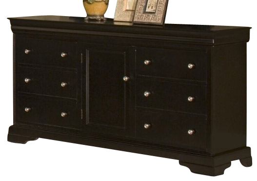 The Belle Rose collection presents a sophisticated update of the classic Louis Phillipe style with its fresh black cherry finish.Dresser has shelved storage behind the door, while the unique chest sports a top that lifts to reveal felt lined jewelry storage area and beveled glass mirror. All cases have attractive full return top and base moldings and bracket feet.