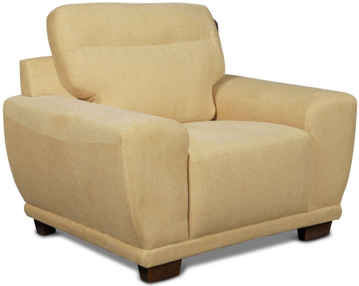 Sun chair has full foam cushions. Sun finish and cream stitch. This chair a great for any living room.
