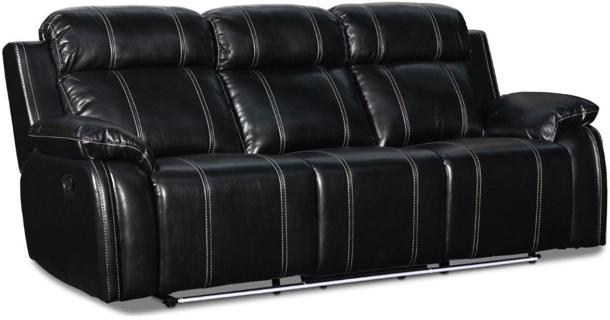 The Fusion sofa has a black fabric. Dual reclining feature. And blue base lighting.Read More