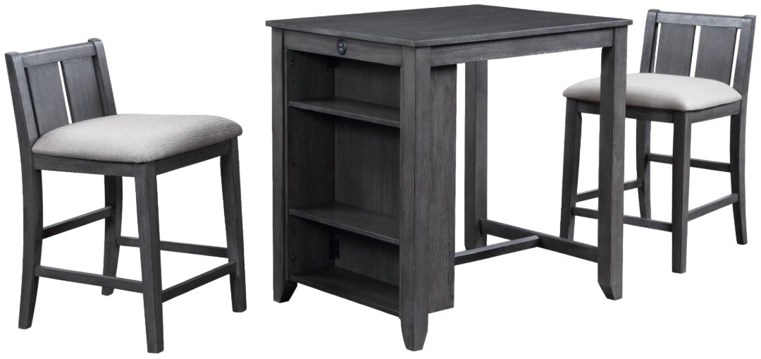 The Heston 3-Piece Counter Dining Set in rich gray combines practical design with modern aesthetics, making it a standout choice for compact living spaces. Constructed from solid rubberwood, engineered woods, and authentic Mindy wood veneers, this set is built for long-lasting durability and showcases the timeless beauty of real wood.Read More