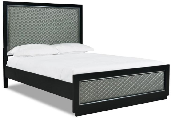 Glam up your bedroom with the sleek and stylish Luxor Collection. Glossy black frames highlight the upholstered silver drawer fronts and headboard. Gleaming silver drawer pulls with crystal inset accents make the set pop.Read More