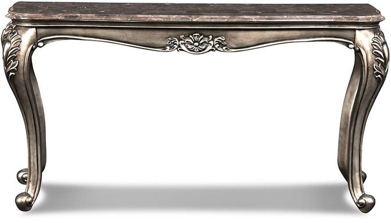 Ornate framework created by handmade wood carvings that are replicated into molds for high quality polyurethane replications, allowing for custom colors and unique shaping. Real marble top.