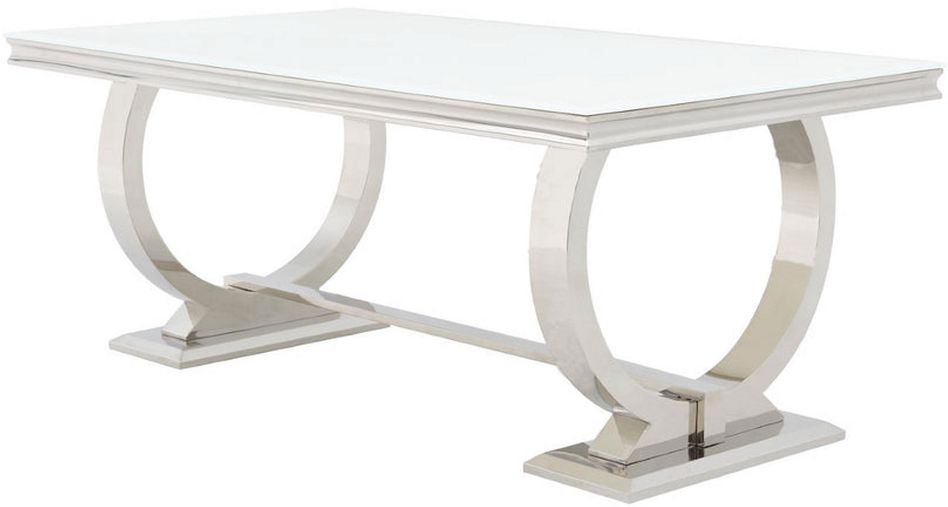 Elevate your dining space with the Tempest Dining Table which has a rectangular top and is finished in white color. It also features stainless steel legs for timeless style. You will love this piece in your home.Read More