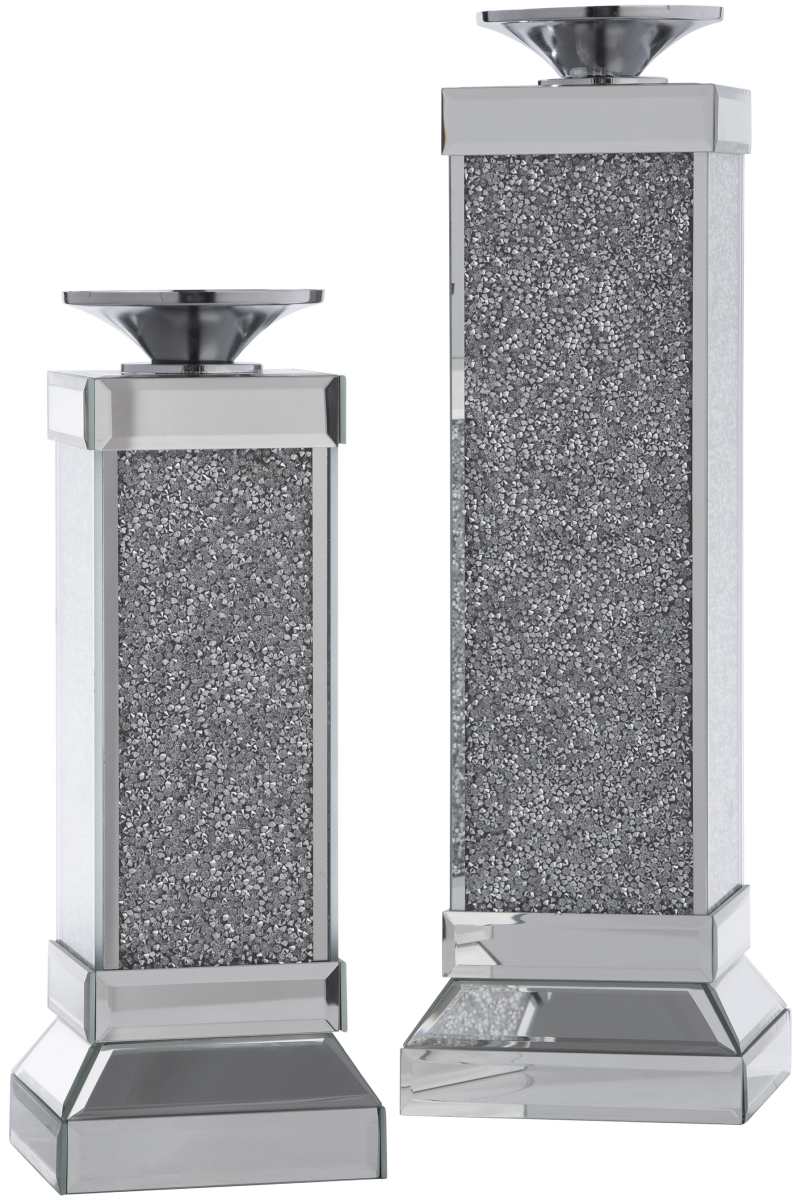Add a touch of glamour to your accent table or mantle with this candle holder set. The cut-glass mirror base embellished with silvertone beaded accents will keep the candlelight dancing for hours.Read More