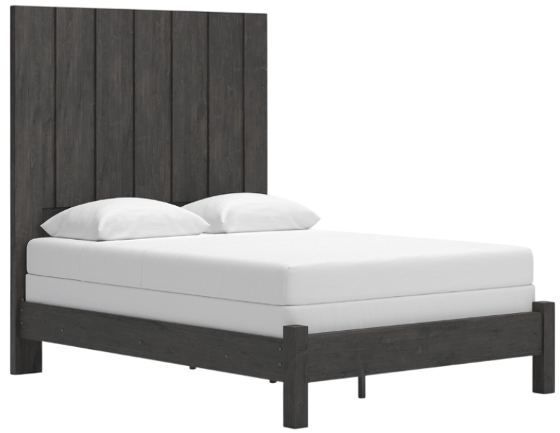 Find serene simplicity in the clean lines and dark neutral tones of this king panel bed. It’s a sincere approach to modern elegance, giving you high style at a great value. Vertical planks decorate the generously scaled headboard to give the illusion of additional height, polishing off the piece in grand fashion.Read More