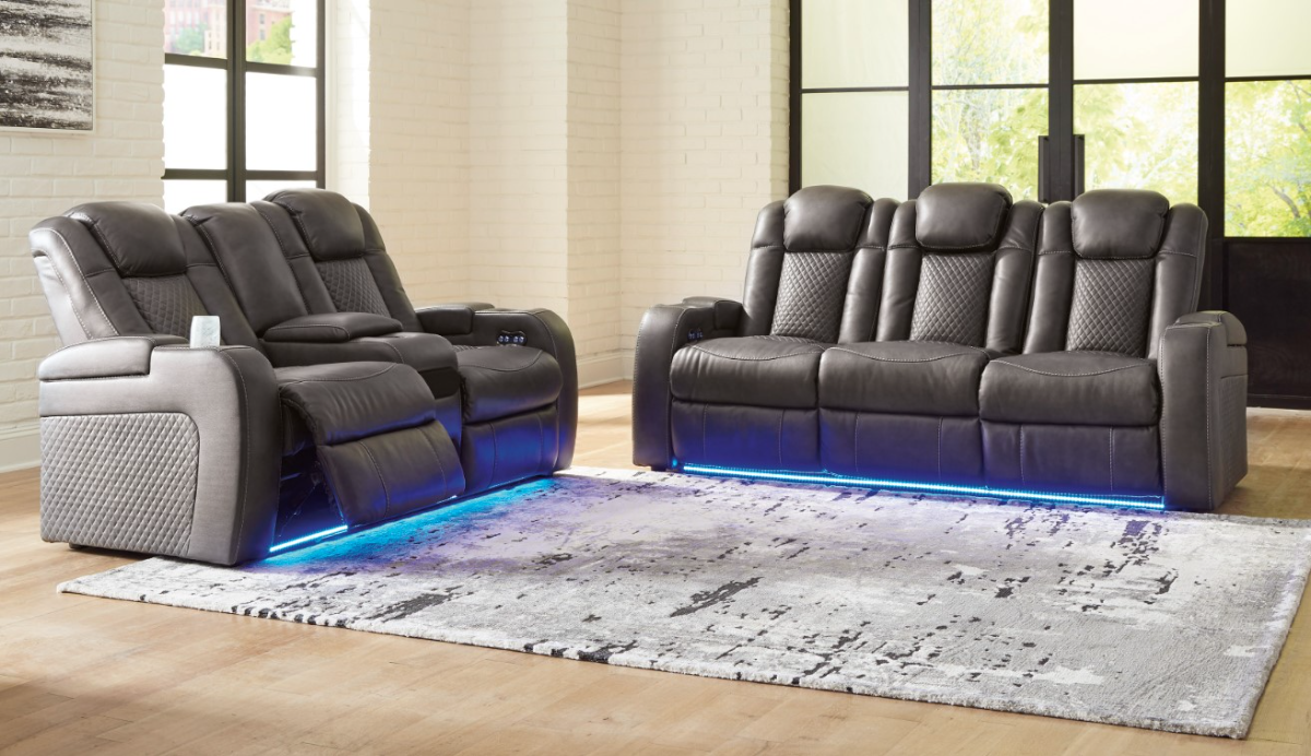 This power reclining sofa & loveseat set goes beyond basic comfort. They upgrade the everyday, turning your living room into an entertainment hub. Don’t want to leave your seat? Keep essentials within reach with assorted charging options, cup holders, and storage arms.Read More