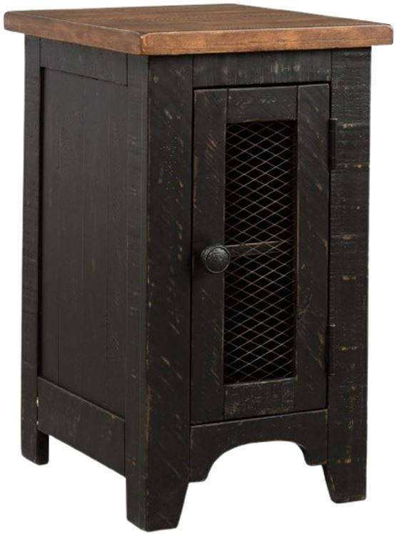 To those with an eye for the best in rustic farmhouse living, this two-tone chairside end table doubles up on charm. Designer touches include plank-effect styling, distress marks and a wire mesh door front for added character.Read More