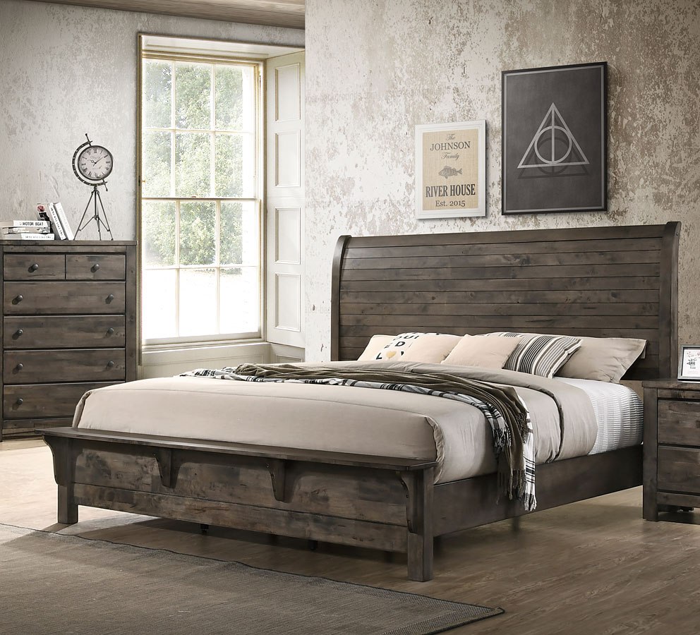 The Blue Ridge Bed by New Classic Furniture offers a harmonious blend of sustainability and timeless design. Crafted from reclaimed solid wood, sourced from various origins, this set embraces eco-friendly construction, contributing to the responsible use of natural resources. The naturally timeworn appearance, characterized by nail holes, bug holes, water and mineral staining, checking, and open knots, tells a story of the wood’s history. Carefully selected boards highlight and preservethese unique traits, ensuring that no two pieces are alike. The Solid wood strength of reclaimed wood, seasoned through years of service, is further reinforced with a finger joining technique, creating the hallmark long planks of the Blue Ridge.Read More